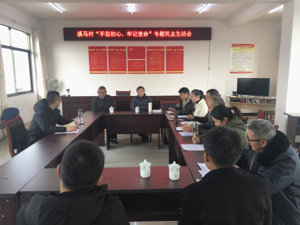 12月10日下午,华阳镇溪马村召开“两委”班子“不忘初心、牢记使命”主题教育专题民主生活会。联村组长章驰哲到会指导,各村民组组长(党小组组长)列席会议。