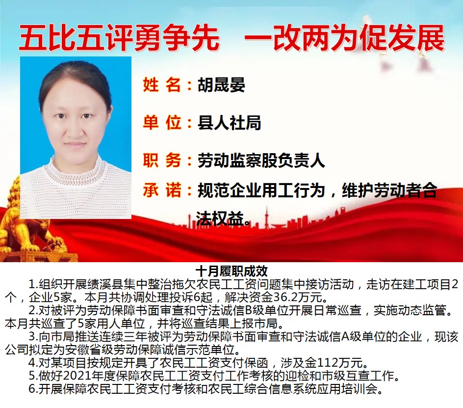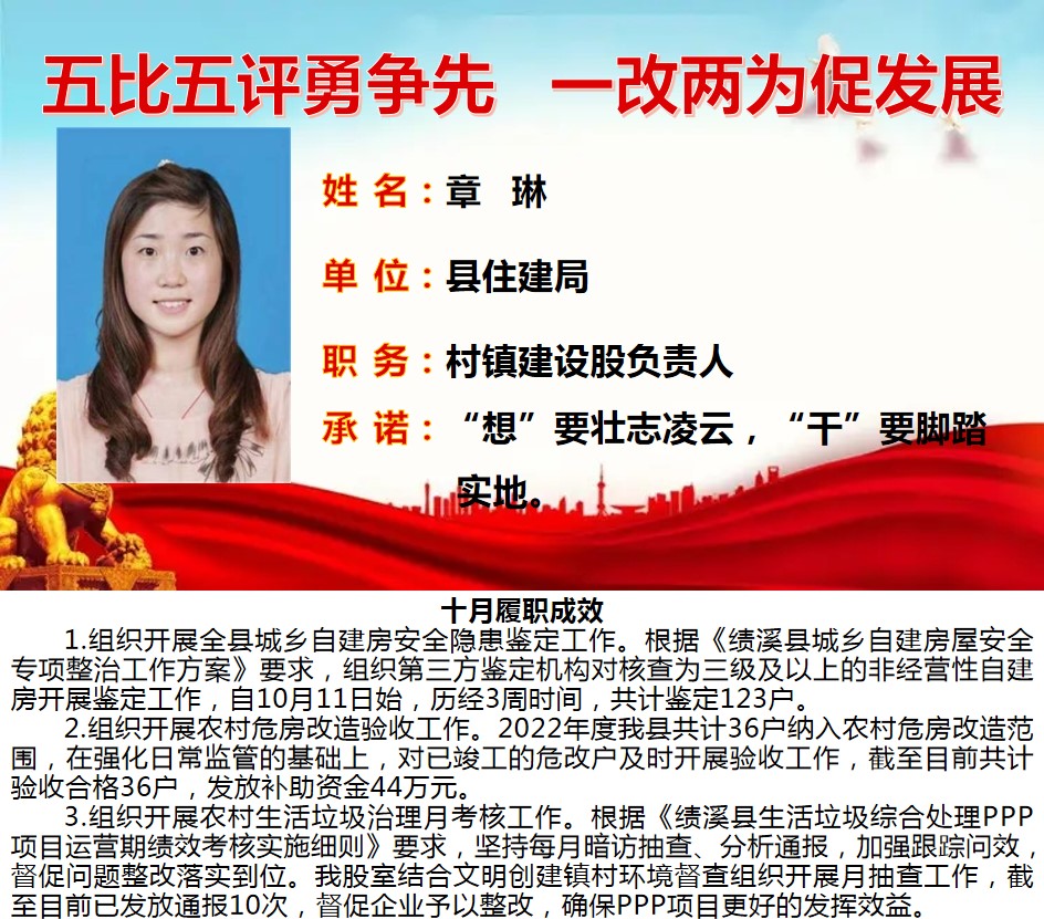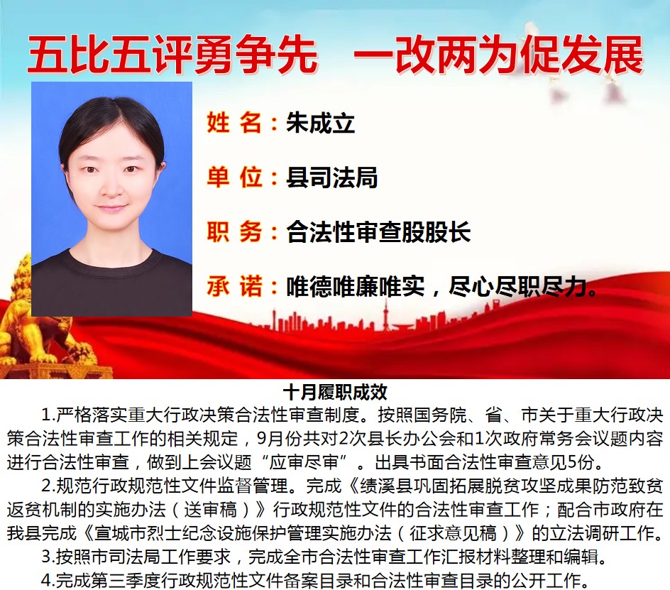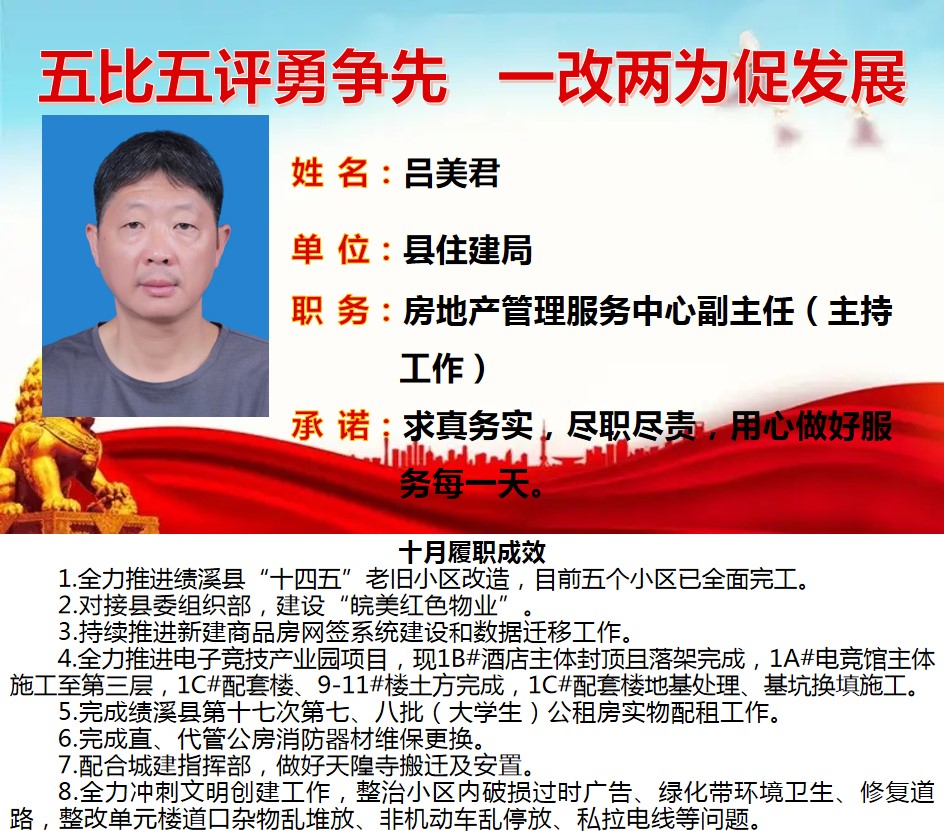绩溪先锋本期将公示综合管理类18名参评对象10月份履职成效