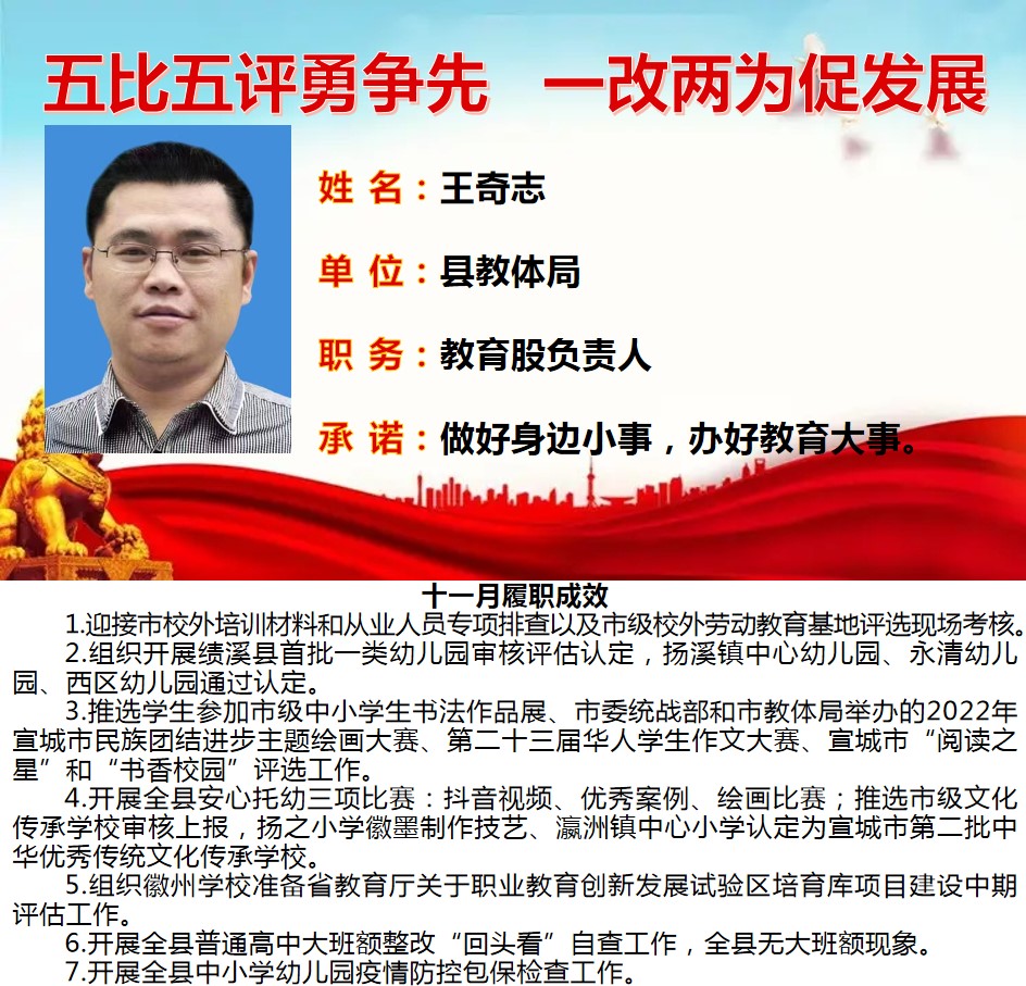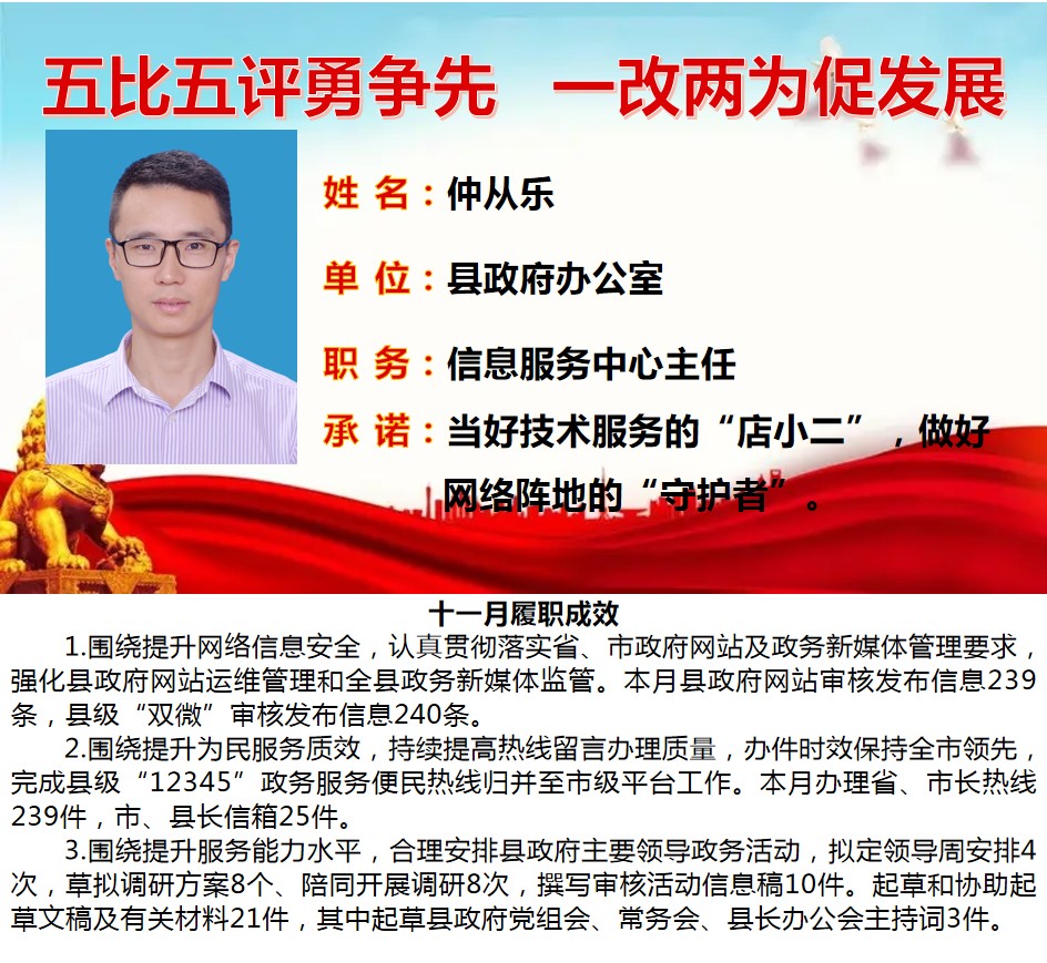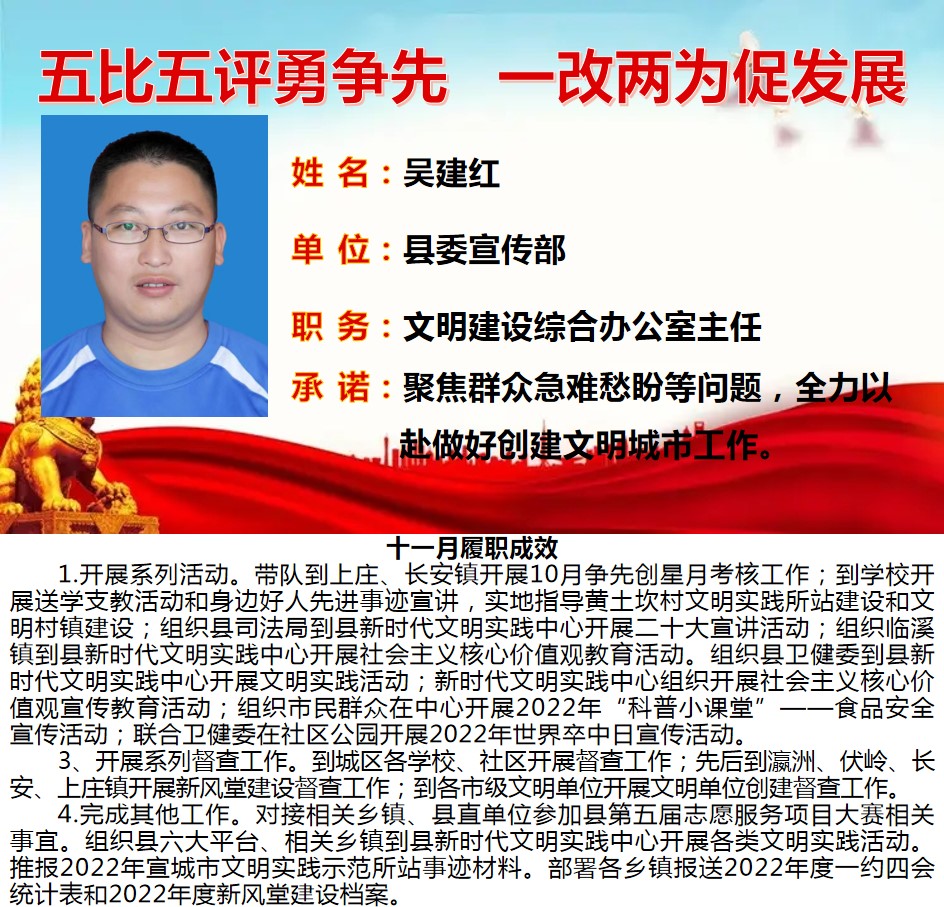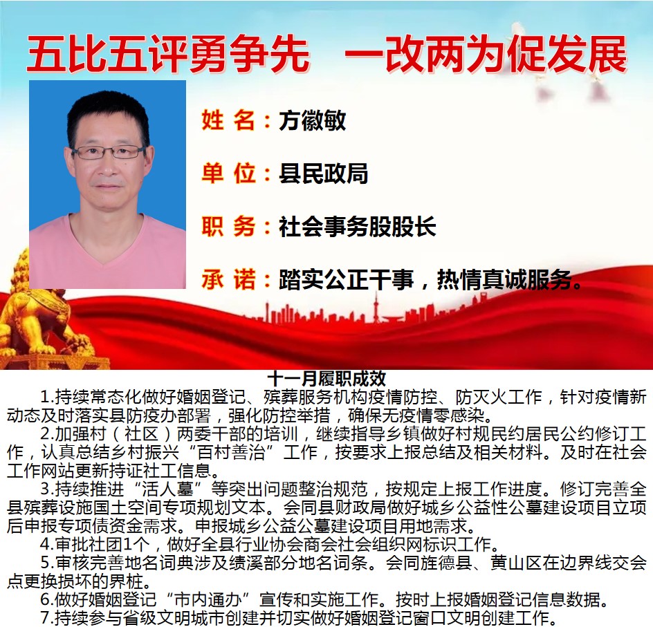 绩溪先锋本期将公示综合管理类15名参评对象11月份履职成效
