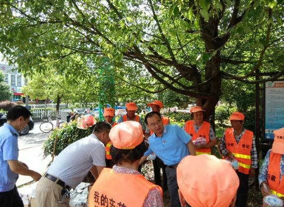 7月19日下午,县委常委、组织部长梁保清在县总工会有关领导的陪同下,冒着高温酷暑,走上街头慰问一线环卫工人,为他们送上防暑用品。