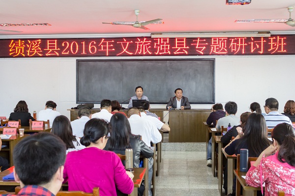 本次培训班主要采取理论授课与专题研讨相结合的方式进行,将系统接受党的理论、“十三五”规划、旅游强县及乡村旅游示范村标准、智慧旅游等内容;还结合现代旅游业发展的新形势、大趋势和我县文化旅游产业发展的现状,重点设置了“如何加快和推进文旅强县”专题研讨。特别邀请了黄山学院副院长胡善风、市委党校王菁老师分别作题为《如何融入皖南国际文化旅游示范区和“大黄山”国家公园建设》和《文化创意产业讲座》专题授课。旨在为进一步加快绩溪文化旅游产业转型升级、推进“皖南国际文化旅游示范区”建设和打造“两个目的地”奠定基础。
