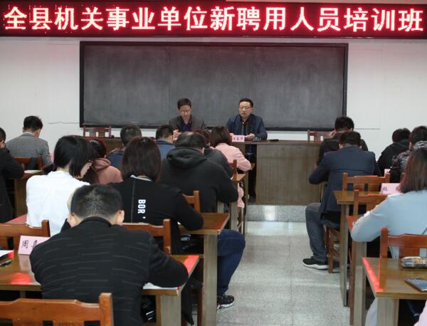 4月16日,根据县委主体班次培训计划,在县委党校举办全县机关事业单位新聘用人员培训班。全县各单位85人参加培训,县委组织部副部长、县人社局局长汪宝华出席开班仪式并作动员讲话,县委党校副校长程思纯主持开班仪式。