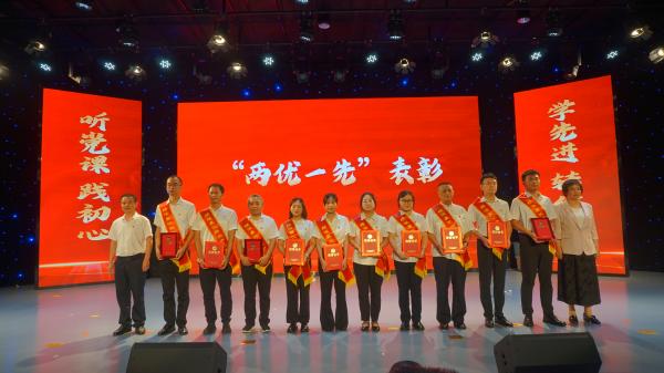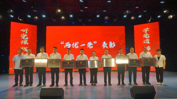7月1日下午,全县“听党课、践初心、学先进、转作风”暨“两优一先”表彰活动在县融媒体中心演播厅举行。
