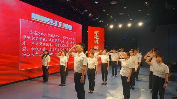 来自不同行业的新入党党员代表整齐列队,在鲜艳的党旗下,庄严地进行了集体入党宣誓。誓言铮铮,响彻全场,表达了他们对党忠诚、为共产主义事业奋斗终身的坚定决心 。