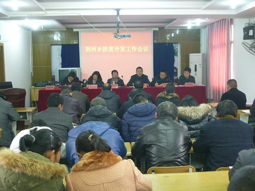 1月5日上午,荆州乡召开扶贫开发工作会议,乡机关全体干部、村两委干部、第一书记、扶贫工作队队长、大学生村官参加了会议,会议由乡党委书记章基稳主持。