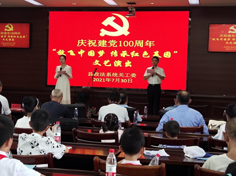 党旗飘飘,歌声缭绕,绩溪县政法系统关工委近日在县检察院四楼活动中心举办“放飞中国梦 传承红色基因”文艺演出,庆祝中国共产党成立100周年。政法系统各单位职工子女,联合奉献了近20个文艺演出节目。县关工委主任罗晓锦、县政法委常务副书记周道清、县政法系统关工委、县公安局、县法院、县检察院、县司法局、县民政局关工委主任、副主任等出席了会议。