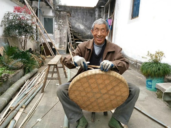 每到十月以后,农村里进入一年中最农闲季节。但章老没闲着,上山挑选粗细均匀,生长期较长的毛竹。雨雪天气就在家砍、锯、切、剖、拉、撬、编……用他那双柔韧、粗糙而又灵巧的双手编织一件件背篓、筛子、簸箕、竹篮、火熥等农家常用的竹器生活用品。镇村帮扶干部主动帮他联系客户,把他编织的竹器产品发到朋友圈与微信群推广,打开了产品的销路,让章老有了一笔较稳定的收入……