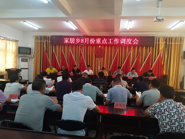 8月23日上午,家朋乡召开8月份重点工作调度会,各村党(总)支部书记、村委会主任、各联村领导和联村组长参加,乡党委书记戴晓静主持会议。