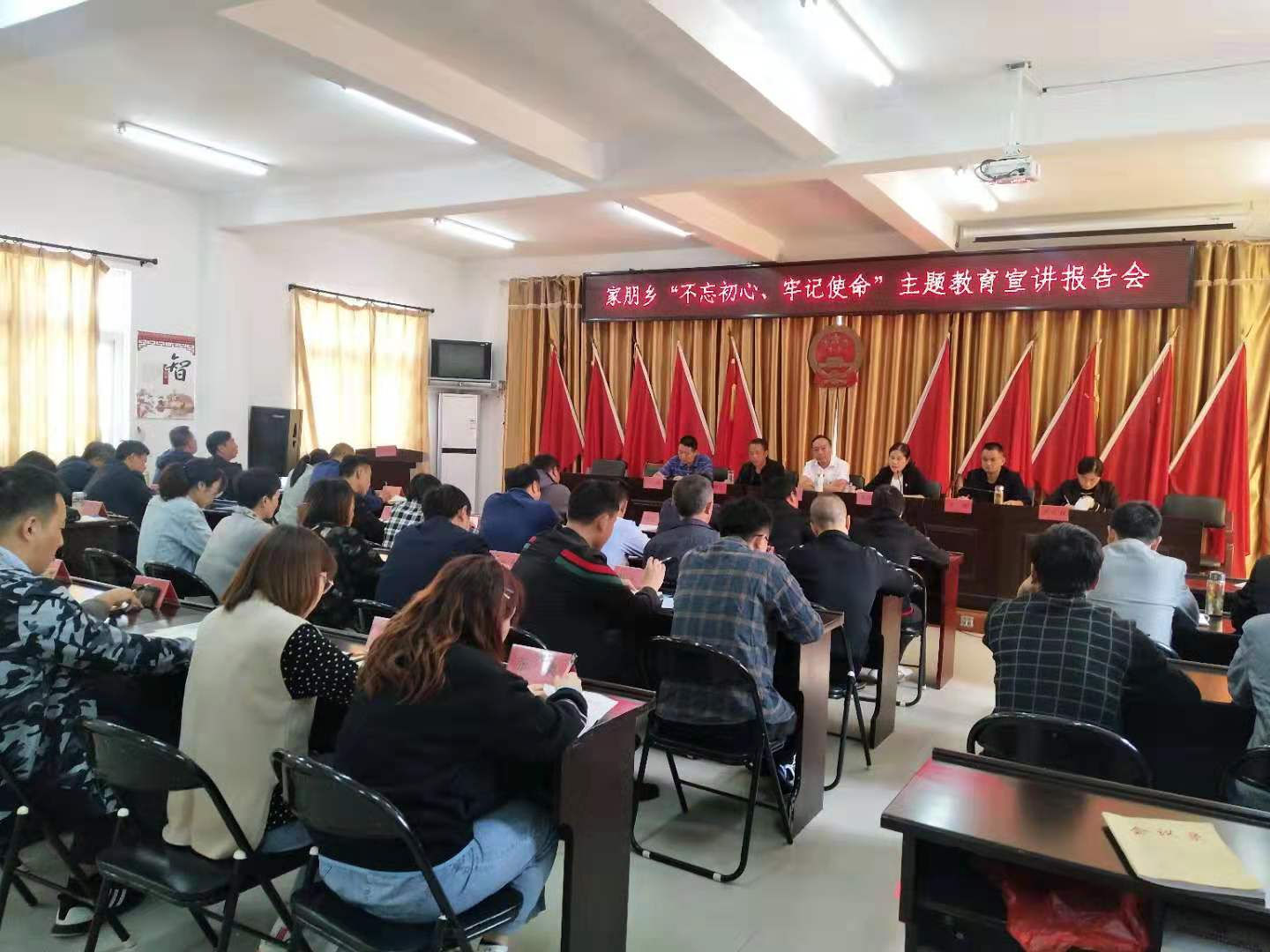 10月9日上午,家朋乡“不忘初心、牢记使命”主题教育宣讲报告会在乡3楼会议室开讲。全体乡干部、各村党组织书记、村委会主任聆听了宣讲。