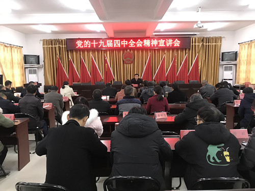 12月19日,家朋乡组织召开了党的十九届四中全会精神宣讲会,会议特邀绩溪县委宣讲团成员、县委政法委常务副书记周道清到会宣讲。全体乡干部、各村“两委”主干、乡直机关负责人共计50余人参会,家朋乡党委委员、人大主席陈陟主持会议。