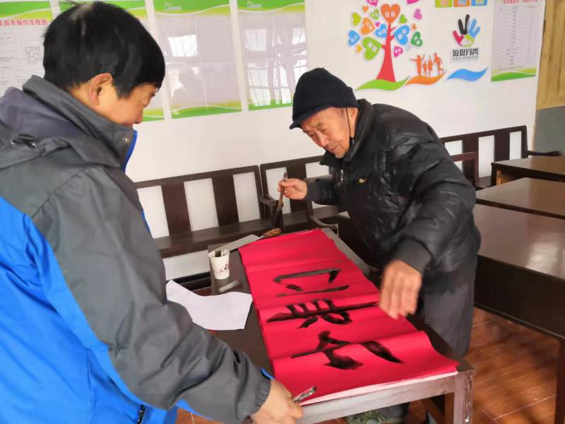 走进家朋乡家朋村,沿线醒目位置都张贴着手写的新型冠状病毒感染的肺炎疫情防控宣传标语。这些都是家朋村82岁老党员许传成的“杰作”。春节假期制作标语横幅需要时间,且手写标语更接地气,粘贴更加方便,党龄40年的家朋村老党员许传成积极响应号召,主动担负起家朋村防疫宣传标语撰写工作。在家朋村党群服务中心,他一笔一画认真书写着每一条宣传标语,每一张红色标语都饱含着老人对党对人民的拳拳之心,体现着一名共产党员的责任与担当,笔墨丹青间传递的是全民战疫的正能量。