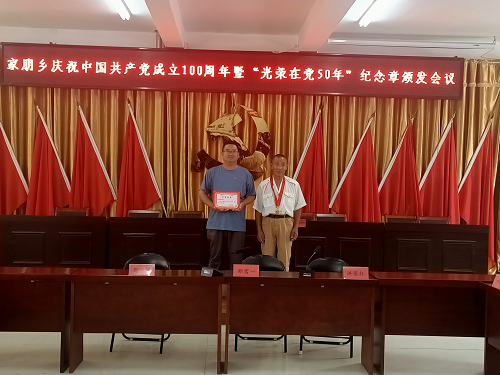 在绩溪县家朋乡有这么一对父子俩,有着51年党龄的父亲汪志德和非公企业优秀党员儿子汪?;?。老一辈党员退伍回乡,建设家乡;新一代党员深入基层,为人民做实事。今年的6月25日,汪志德作为老党员代表,儿子汪?;魑遗笙?020年度优秀共产党员代表,父子一同参加家朋乡“光荣在党50年”纪念章颁发大会同台领奖,体现了共产党员的初心传承。