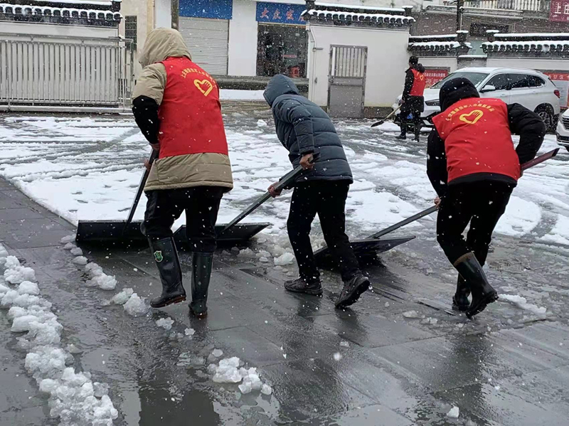 党员干部迅速行动,班子成员以身作则,当好铲雪除冰的“带头人”,镇村党员干部紧跟其后,奔赴工作岗位,积极开展铲雪除冰工作。大家换上雨衣雨鞋,手拿铁锹、雪铲等工具,对办公大院包干责任区域、主干线路上积雪较多区域进行铲雪除冰。天气严寒、路面湿滑,但大家个个精神饱满、干劲十足,在红色身影的带动下,越来越多的群众也加入了铲雪队伍中,党群齐心,合力打赢冰雪攻坚战。