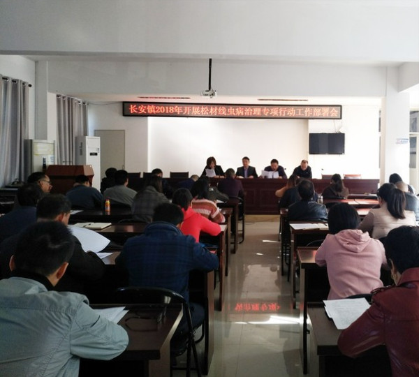 10月29日上午,长安镇召开了2018年松材线虫病治理专项行动工作部署会议?;嵋橛烧虺じ叩婪芍鞒?,镇直相关单位负责人、村两委负责人等参加会议。